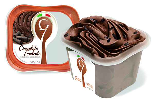 Chocolate Gelato made with Belgian dark chocolate. Decorated with dark chocolate curls.